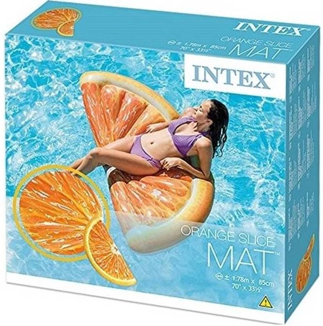 Intex Φουσκωτό Στρώμα Θαλάσσης Φέτα Πορτοκάλι Φουσκωτό στρώμα θαλάσσης ενηλίκων σε σχήμα φέτας πορτοκαλιού Διαστάσεις: 178×85 εκ Μέγιστο βάρος: 100 kg ΠΡΟΣΟΧΗ: Το προϊόν δεν προστατεύει από πνιγμό. *Περιέχεται κομμάτι επιδιόρθωσης