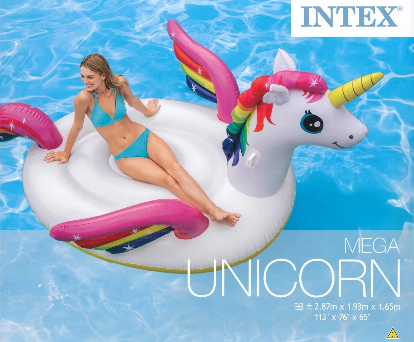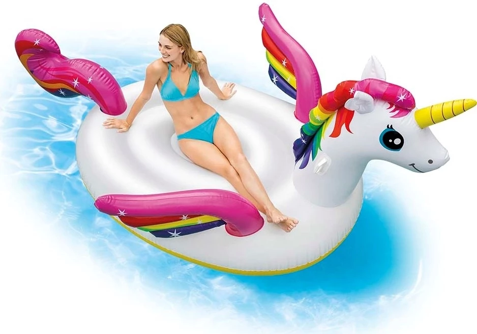 Intex Φουσκωτό Στρώμα Θαλάσσης Μονόκερος Μεγάλο φουσκωτό στρώμα θαλάσσης ενηλίκων σε σχήμα φτερωτού μονόκερου με πλατιά επιφάνεια ξεκούρασης όπου χωράει δύο ενήλικες αναπαυτικά.Με ανθεκτικές λαβές για να ανεβείτε πάνω. Διαστάσεις: 287x193x165 εκ Μέγιστο βάρος:200 kg ΠΡΟΣΟΧΗ: Το προϊόν δεν προστατεύει από πνιγμό. *Περιέχεται κομμάτι επιδιόρθωσης