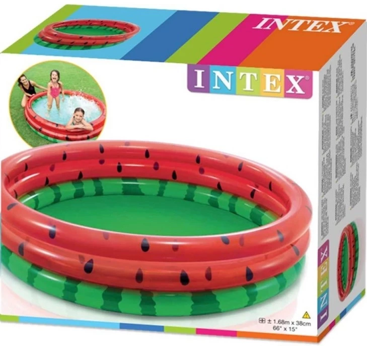 Intex Πισίνα Καρπούζι Με τρεις θαλάμους αέρα με διπλές βαλβίδες Περιλαμβάνεται κομμάτι επιδιόρθωσης Διαστάσεις:168×38 εκ