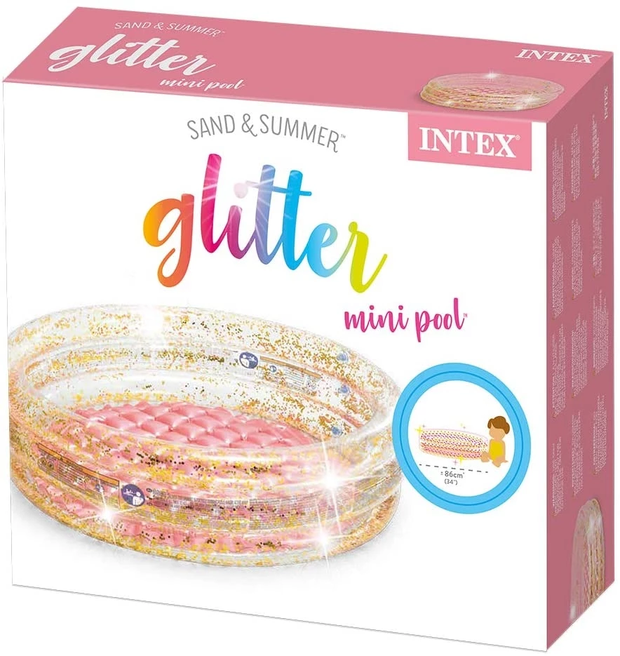 Intex Πισίνα Με Γκλίτερ Μίνι πισίνα με λάμψη με μαλακό φουσκωτό πάτο. *Περιέχεται κομμάτι επιδιόρθωσης. *Διαστάσεις 86 x 25 εκ.