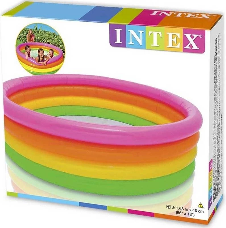 Intex Πισίνα Sunset Glow Pool Πολύχρωμη πισίνα με 4 τάπες αέρα με διπλές βαλβίδες Βολική τάπα αποστράγγισης Περιέχεται κομμάτι επιδιόρθωσης Διαστάσεις:168×46 εκ