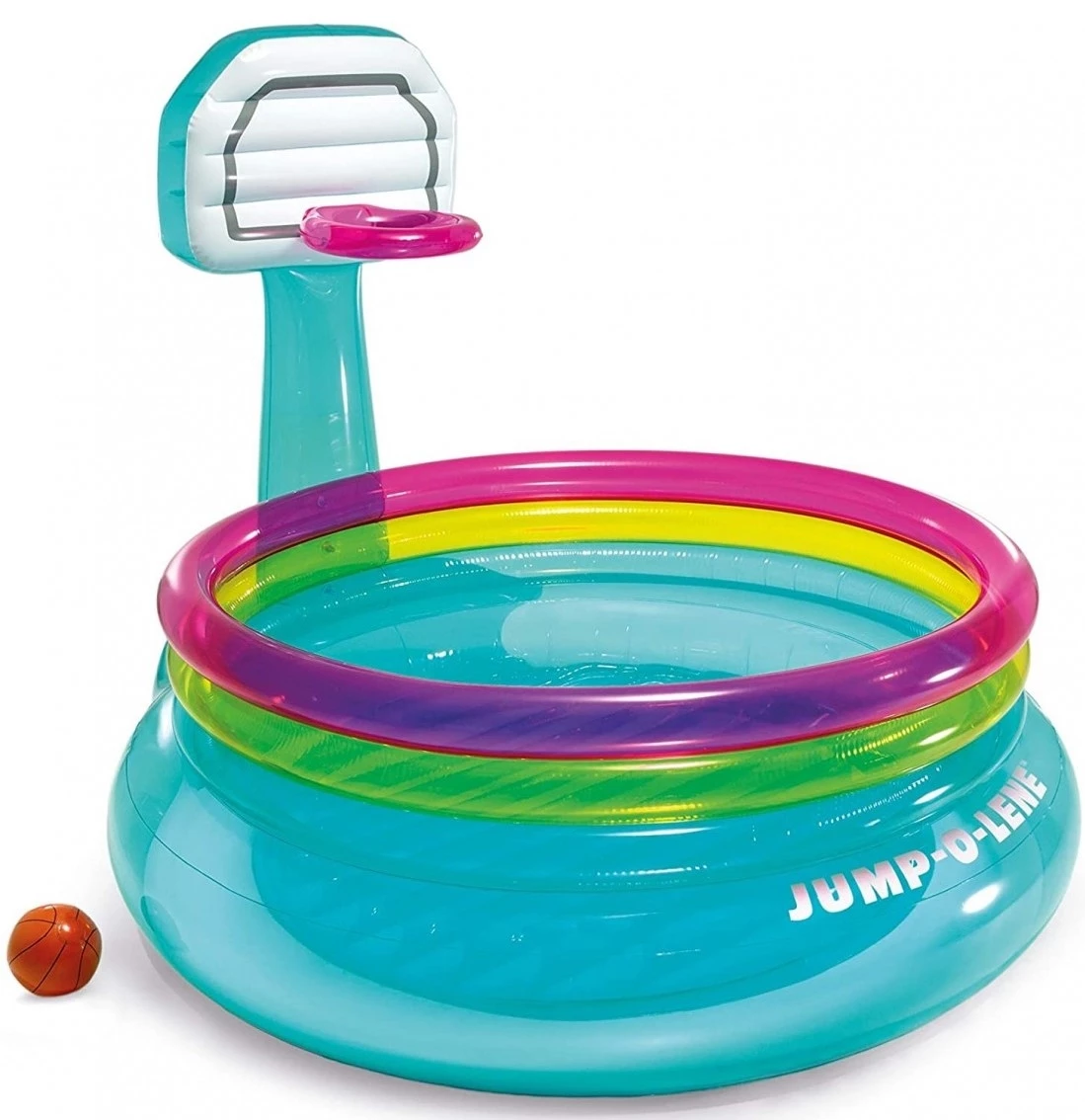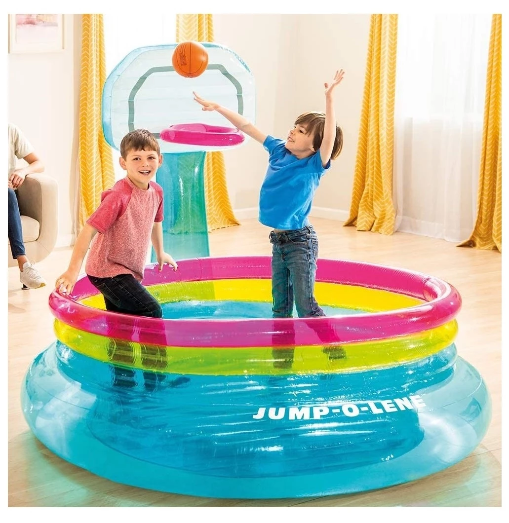 Intex Shoot’n Bounce Jump-O-Lene Τραμπολίνο με Μπασκέτα Φουσκωτή Πίστα Jump-O-Lene Με Μπασκέτα (Περιλαμβάνει Μπάλα).Διαστάσεις προϊόντος: 196x180x152cm (ΜxΠxΥ). Μέχρι 2 παιδιά-Μέγιστο βάρος ανά παιδί:26 κιλά