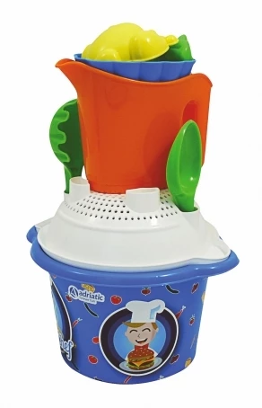 Καλοκαιρινό Adriatic κουβαδάκι Chef με αξεσουάρ. Περιλαμβάνει:κουβαδάκι με καπάκι, ποτιστήρι, φτυαράκι και τσουγκράνα. Διατίθεται σε διάφορους συνδιασμούς χρωμάτων *Η επιλογή θα γίνεται τυχαία Διαστάσεις (κουβαδάκι): Μ:14x Π:14x Υ:20 εκ. Ιταλικό προϊόν