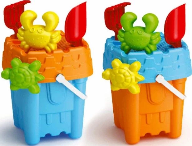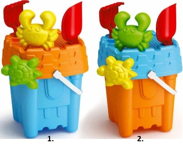 Καλοκαιρινό Adriatic Κουβαδάκι Με Αξεσουάρ-2 Σχέδια Σετ κάστρου σε 2 χρώματα 6 τεμαχίων με κόσκινο, τσουγκράνα, φτυάρι και 2 καλούπια άμμου.