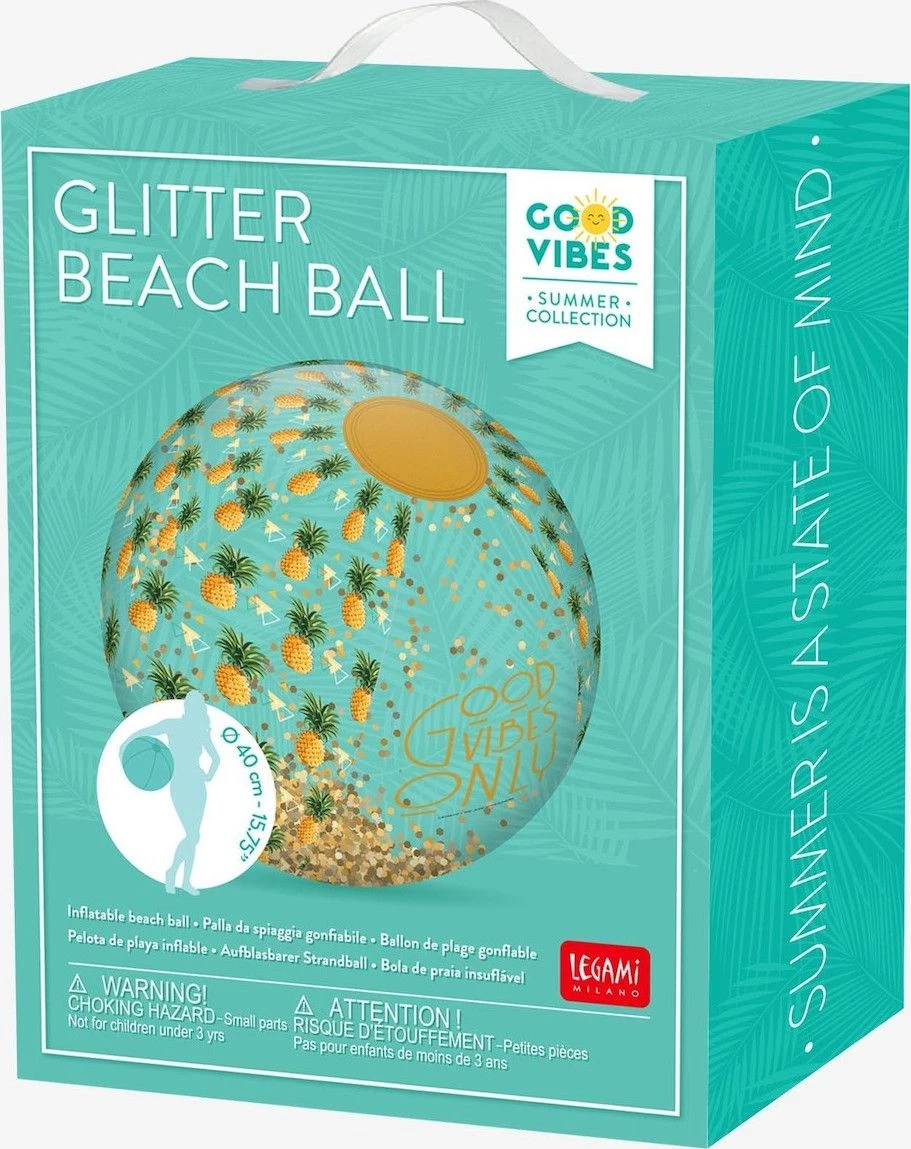 Legami Μπάλα Θαλάσσης Pineapple Glitter 40εκ Φουσκωτή μπάλα παραλίας διαμέτρου 40cm με πολύχρωμο glitter στο εσωτερικό της