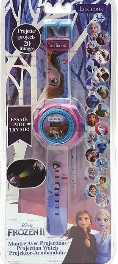 Lexibook Ψηφιακό Ρολόι Frozen 2 Προτζέκτορας Με 20 Εικόνες Χάρη σε αυτό το ρολόι προβολής, προβάλλετε 20 εικόνες των αγαπημένων σας χαρακτήρων γύρω σας! – 20 εικόνες για προβολή όπου θέλετε! – Επικοινωνήστε με τους φίλους σας στέλνοντας κωδικοποιημένα μηνύματα με τις προβολές σας – Ρυθμιζόμενο βραχιόλι για τοποθέτηση μικρών…