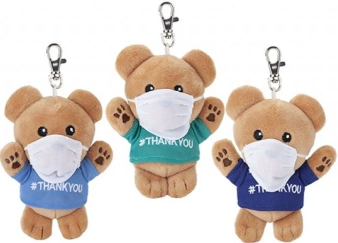 Μπρελόκ Clip Αρκουδάκι Thank You Με Μάσκα Μπρελόκ με αρκουδάκι 10 εκ Κεντημένα μάτια / πόδια T-Shirt και μάσκα προσώπου Nylex Μπλουζάκι με κεντημένο #ThankYou