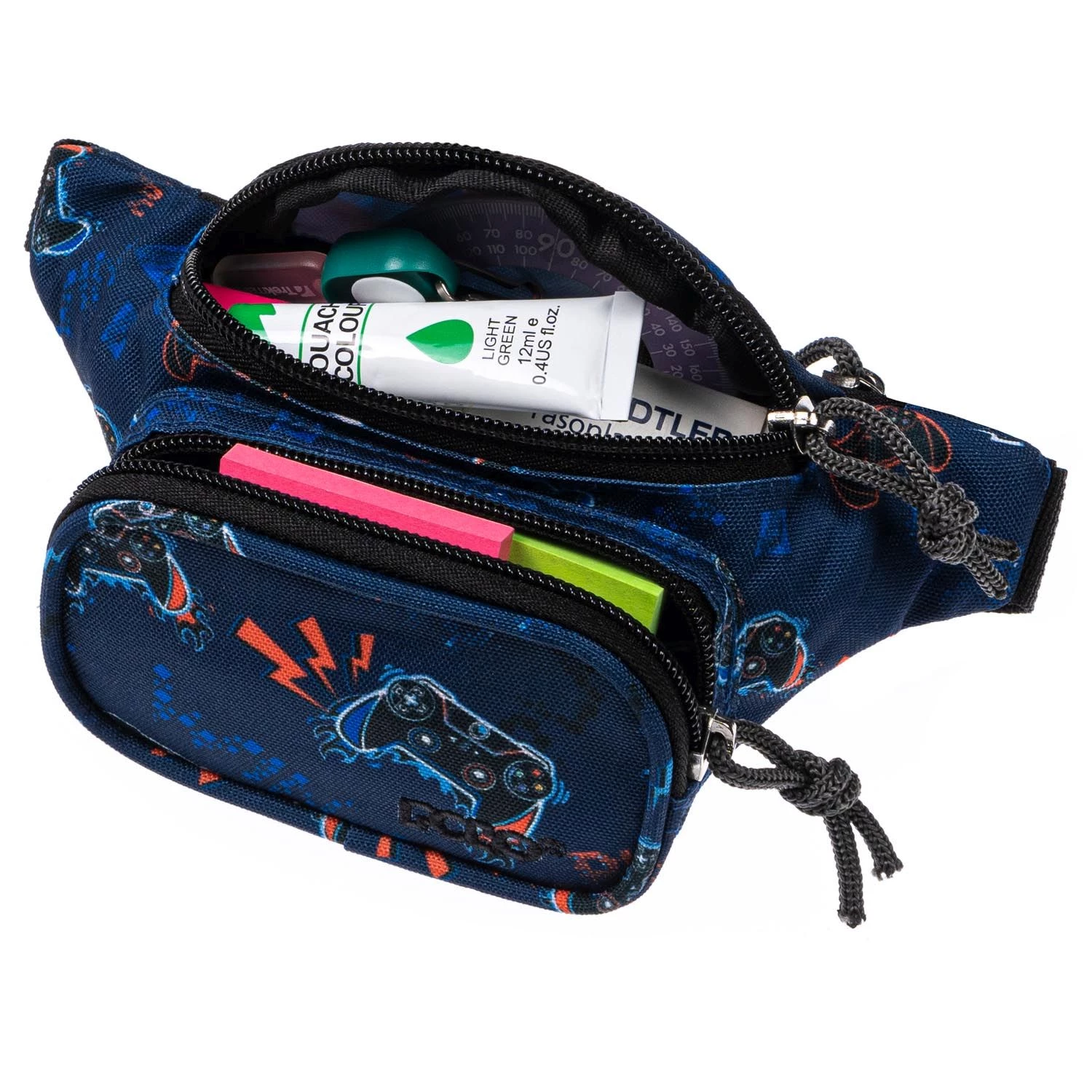 Polo Μπανάνα Kiddo Μεγάλη Βιντεοπαιχνίδια Μπλε Η KIDOM είναι η πρώτη παιδική μπανάνα της Polo. Σε υπέροχα αγορίστικα και κοριτσίστικα σχέδια. Ανθεκτικό ύφασμα 1 κεντρική θήκη 1 μπροστινή τσέπη 1 τσέπη στο πίσω μέρος της μπανάνας φερμουάρ με χρωματιστό κορδόνι Χωρητικότητα: 1.00 lt.