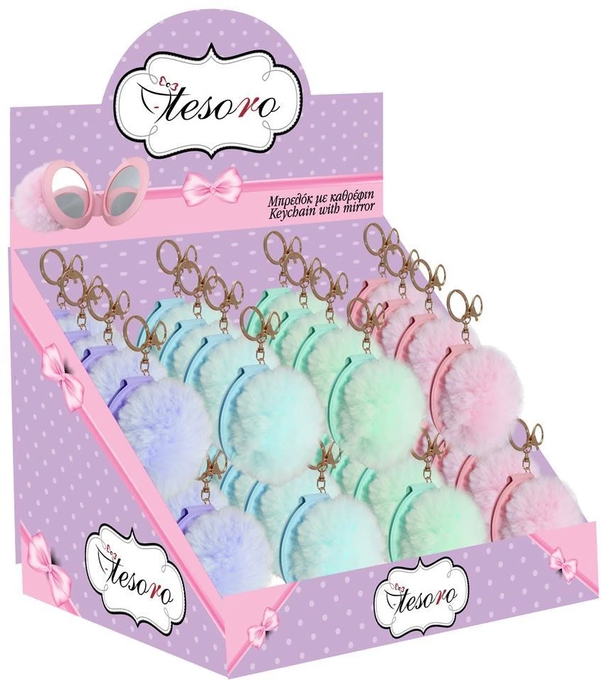 Tesoro Μπρελόκ Με Pom Pom Και διπλό Καθρέφτη *ΤΥΧΑΙΑ επιλογή
